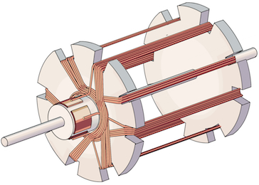 Near the end of my UROP (undergraduate research opportunity) with the Electric Vehicle Team over the summer, one of my supervisors recommended that I read a book on electric motors called Electric Motors and Drives: Fundamentals, Types, and Applications by Austin Hughes and Bill Drury. It was a really interesting read, and it inspired me to try designing my own motor. I knew I wanted to make a DC motor - I had access to DC power supplies - and decided to use field windings instead of permanent magnets because then I would be able to test and adjust the field strength if I needed to. I then resolved to first try making my motor self-excited, and a series motor. I figured that if it worked out well enough, I could make the adjustments neccessary to convert it into a universal motor and run AC currents through it - if that was the way I wanted to go.